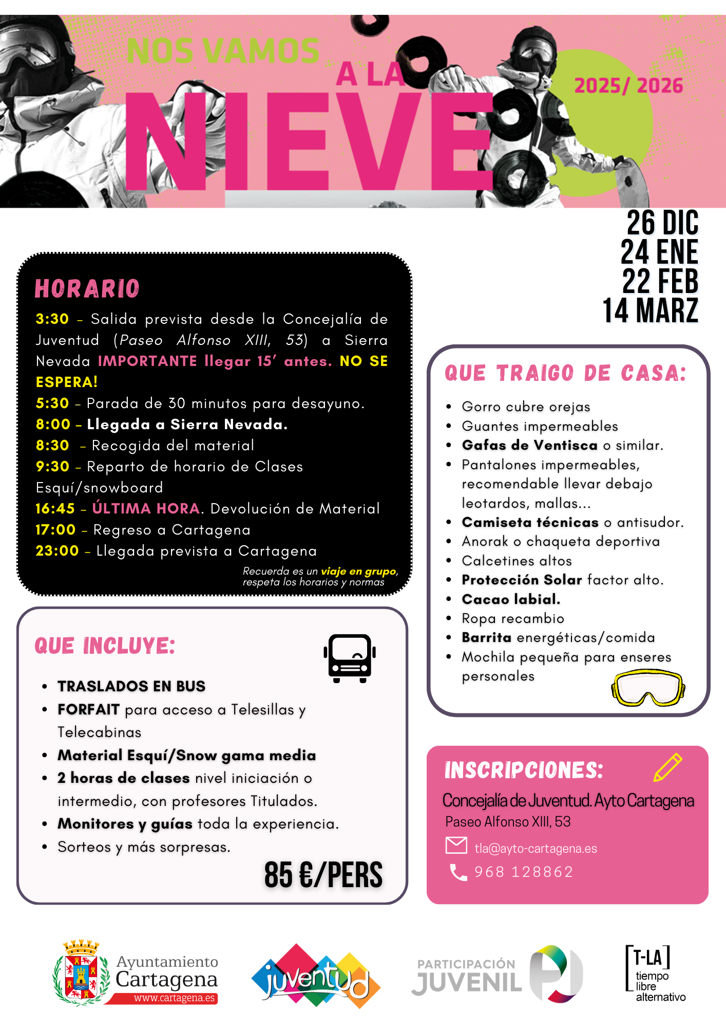 Inscripciones en: tla@ayto-cartagena.es