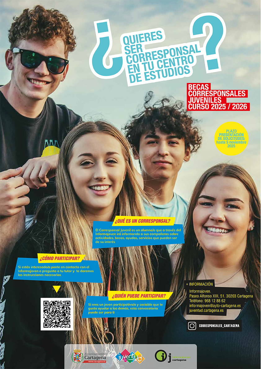 Si estudias en alguno de los Centros de Enseñanza Secundaria y Formación Profesional del Municipio, así como en la UPCT, busca a tu Corresponsal... te ayudará a encontrar la información que necesitas.