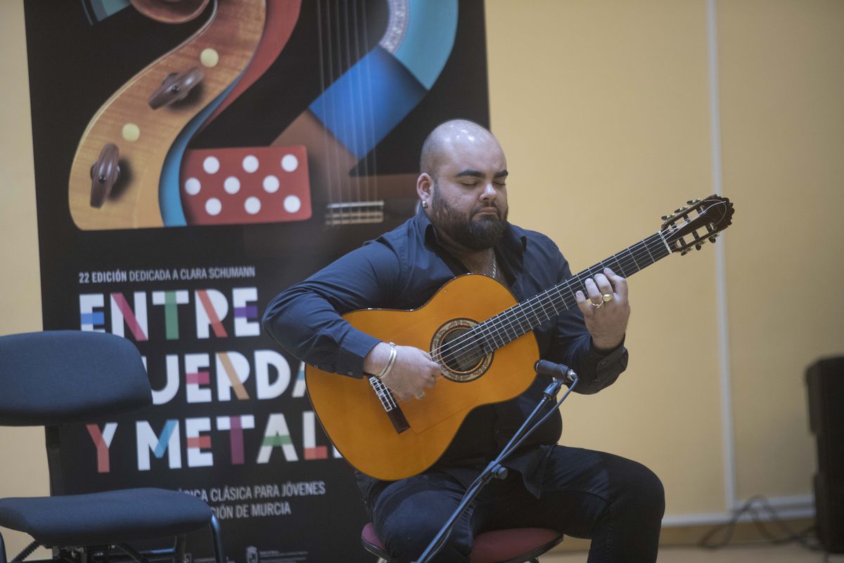 La XXII edición del concurso Entre Cuerdas y Metales afronta ya su recta final. Este lunes 29 de abril, el Auditorio del Conservatorio de Música de Cartagena acogió la final de guitarra flamenca. En ella, seis jóvenes encandilaron al numeroso público que se dio cita en el recinto. Alberto Romero Ruiz, Rodrigo Félix Peral, Álvaro Raúl García Sánchez, Juan Llorente Corbalán, Daniel Madrid Jordán y Juan José Martínez Díaz sacaron a relucir todo su repertorio.