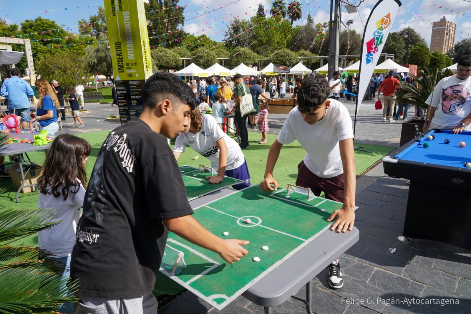 En el Encuentro Interasociativo los colectivos y asociaciones juveniles del municipio de Cartagena exponen sus trabajos, realizan talleres y un amplio abanico de actividades abiertas a todos los jóvenes, dando así a conocer su proyecto. Entre las principales atracciones de la jornada, destacan los concierto en vivo de los grupos locales Darkbullets y Camden quienes ofrecerán una actuación a las 13h y 19h, proporcionando una excelente oportunidad para disfrutar de buena música en directo en un ambiente juvenil y festivo. Además, los asistentes podrán disfruta de la “Zona Joven” provista de futbolín, billar, mesa de pingpong y diferentes juegos dónde tendrán que poner en marcha su creatividad e ingenio.